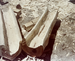 Wooden logs partly hollowed out to serve as drainage canales at the fort.