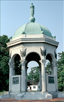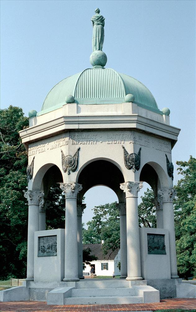 35 || 35'h octagonal granite arcade w/copper domed roof surmounted by copper statue. Bronze relief sculptures mounted on 4 monolithic granite tablets. Copper oxidized, leaks along dome. Located on SE side Hagerstown Pike/Smoketown Rd intersection. || Built in 1900 by the State of Maryland