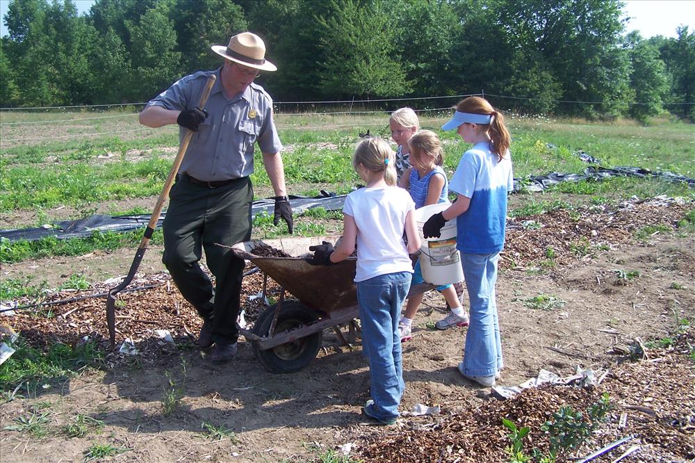 Park ranger and junior rangers down and dirty farming