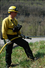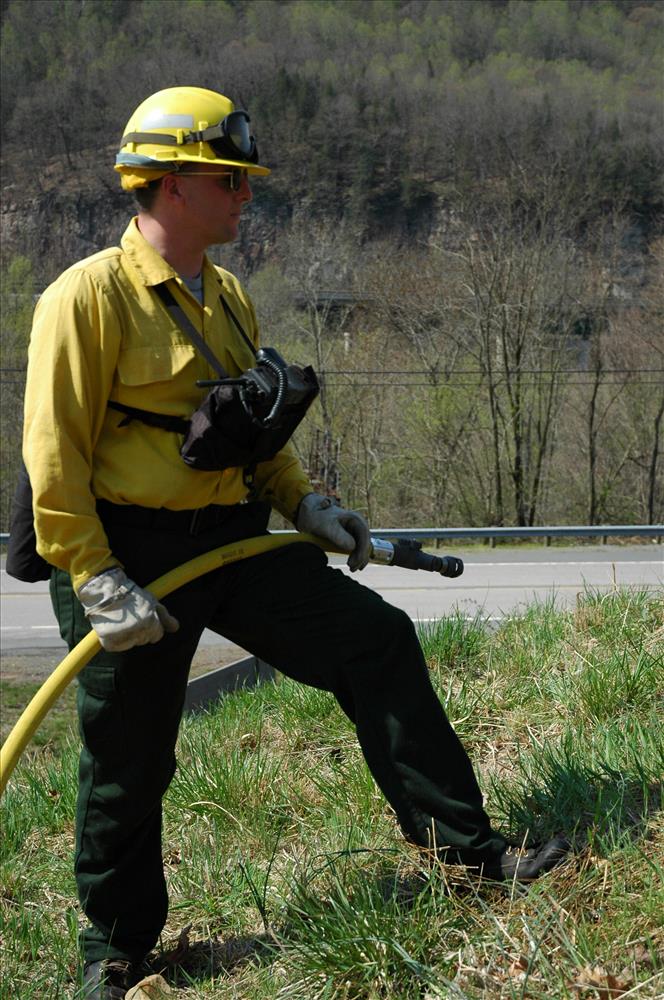 Firefighters working on prescribed fire activities in January 2007, near the Sandstone Visitor Center in New River Gorge National Park and Preserve.