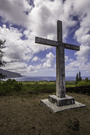 The cross and view of the peninsula and ocean from near the top of the crater.