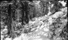John Diehl, 290000, Kern-Kaweah Valley, SNP, High Sierra Trail Investigation, embedded boulers resemble iceburgs not only in their color but they also show about one eighth their mass above the surface. 10,300 foot elevation. Glacial Moraines, Lodgepole Pine Forest Plant Community