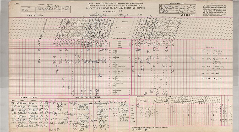 Dispatcher Sheets--Bangor & Portland Branch--Delaware, Lackawanna & Western Railroad [1946.08.01-1946.08.17]
