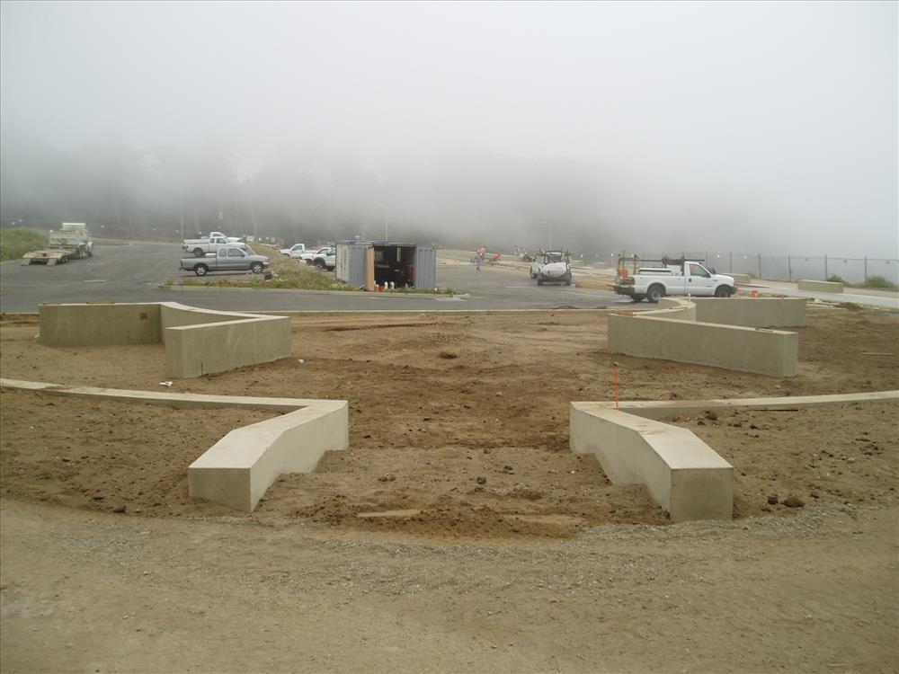 The existing Merrie Way parking lot is approximately 100 feet wide by 350 feet long. Fifty feet of the width sits on un-engineered fill and poses a landslide hazard. In order to re-construct a fully code compliant parking lot and subsurface drainage system, the geotechnical engineers recommend drilling cast-in-place concrete piers every 8 feet along the western edge and extend them down through the fill to bedrock to stabilize the slope (approx 65 feet deep) and prevent failure. After stabilization work is completed, the parking lot will be regraded and resurfaced using sustainable design practices.