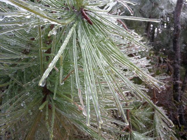 Ice from an overnight storm of freezing rain covers this loblolly pine. The common name 'loblolly' comes from this pine species preference for lowlands and swampy areas.
