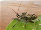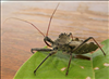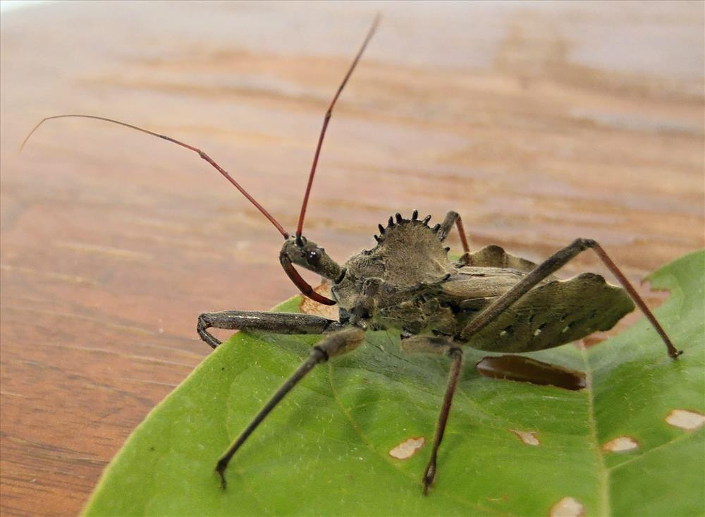 Meet the assassin bug with the least threatening name of all: wheel bug. Wheel bugs are one of the largest terrestrial 'true bugs' of North America. True bugs are in the order Hemiptera, which contains about 50,000-80,000 species! Named for its distinctive wheel-shaped foremost armor structure, wheel bugs are actually fierce predators. In true assassin form, it pierces soft-bodied insects - like caterpillars, stinkbugs or beetles - with its beak to inject salivary fluids that dissolve soft tissue. Once its prey's insides are dissolved into a milky consistency, the wheel bug slurps up its meal, leaving behind a hollow carcass with no obvious outward sign of injury.