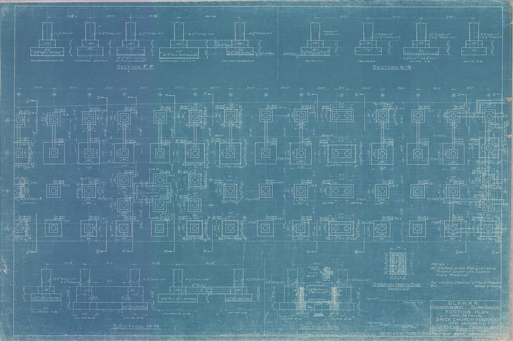 Brick Church Viaduct--Footing plan--East Orange, NJ [1921.05] Sheet no. 3