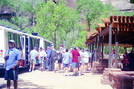 Color Photos of the official launch of the Zion shuttle system- same day as the new visitor center opening. ; ZION Museum and Archives Image 800_25_01037 ; ZION 15933