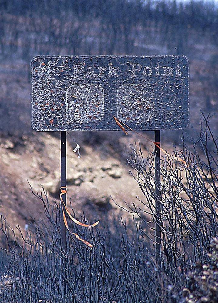 More than 23,000 acres burned during the Bircher fire. These photos document the effects of the fire on forest areas, meadows, hillsides, and guardrails (11,000 feet of guardrail were destroyed).