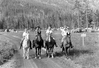 Horseback party of four at Many Glacier Campground, Glacier National Park.