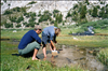 disturbing introduced trout spawning habitat, Upper LeConte Canyon