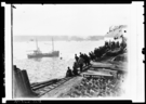 Sightseers watching the loading of a freighter by a wire chute, at Noyo, CA
