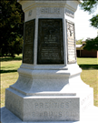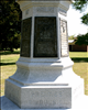 The Barre, VT, granite structure features a 10' diameter hexagonal base, 2 smaller hexagonal tiers and a shaft for a total height of 10'. The shaft features 6 bronze tablets and raised lettering and has a domed cap.