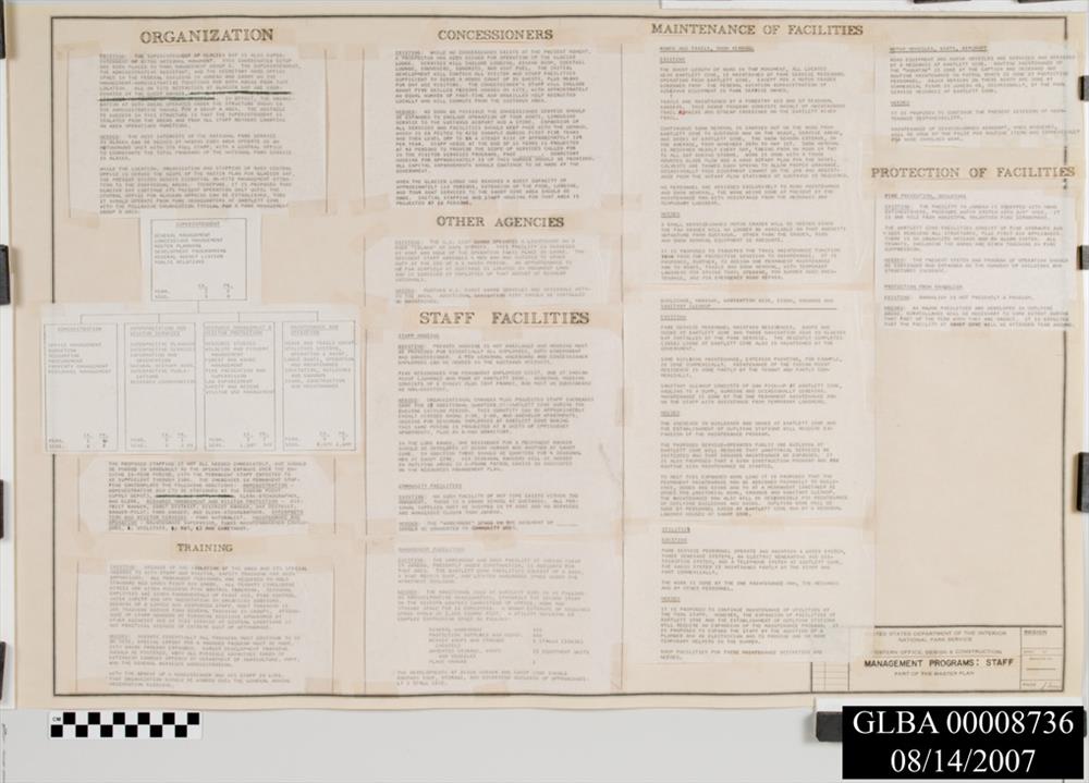 Master Plan for Preservation and Use of Glacier Bay National Monument. 18 pages including maps and text with blue and red ink corrections.