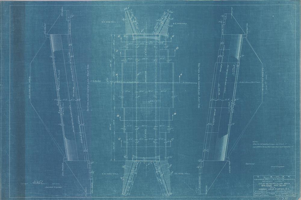 24-foot semicircular arch bridge no. 16.49 over highway--General layout--Near Foster, PA [1912.09.17] Sheet no. 1 of 3