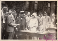 Thomas Edison, Mina Edison, and others at [celebration of 50th anniversary of the Phonograph, held simultaneously with Ediphone convention?]