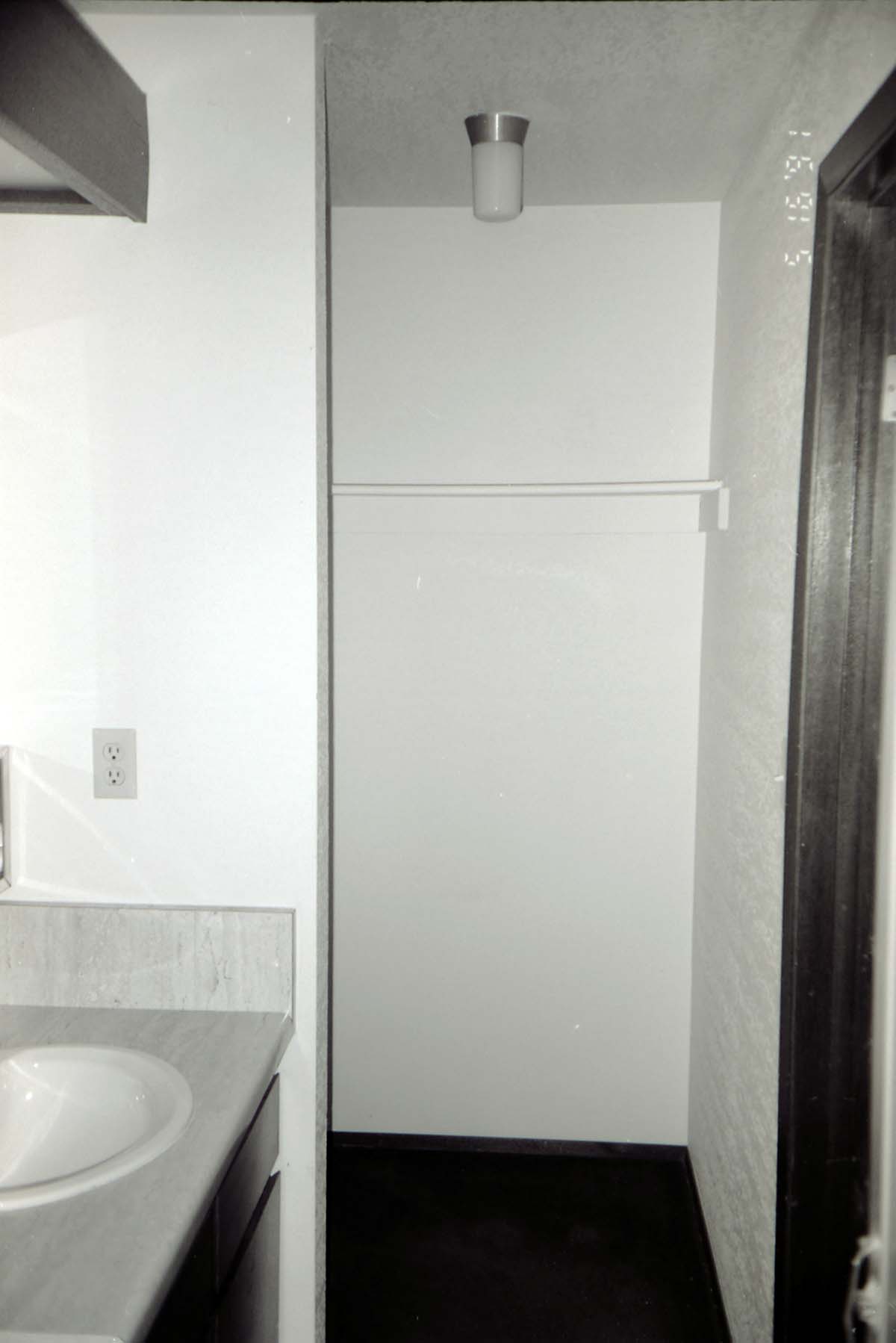 Shower in bathroom of barracks. [Image possibly for comparative housing study] ; ZION Museum and Archives Image 004.03.10-8of27 ; ZION 15933