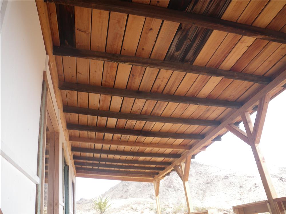 Series of images, before and after, of the progress of the Vanishing Treasures project for the stabilization of the Hilltop House at the Bighorn Mine.