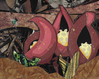 Abstract collage of shades of red with brown and green