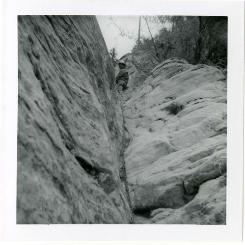 Workers during the Lady Mountain sign emplacement. ; ZION Museum and Archives Image 008.06.01-7of11 ; ZION 15933