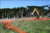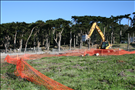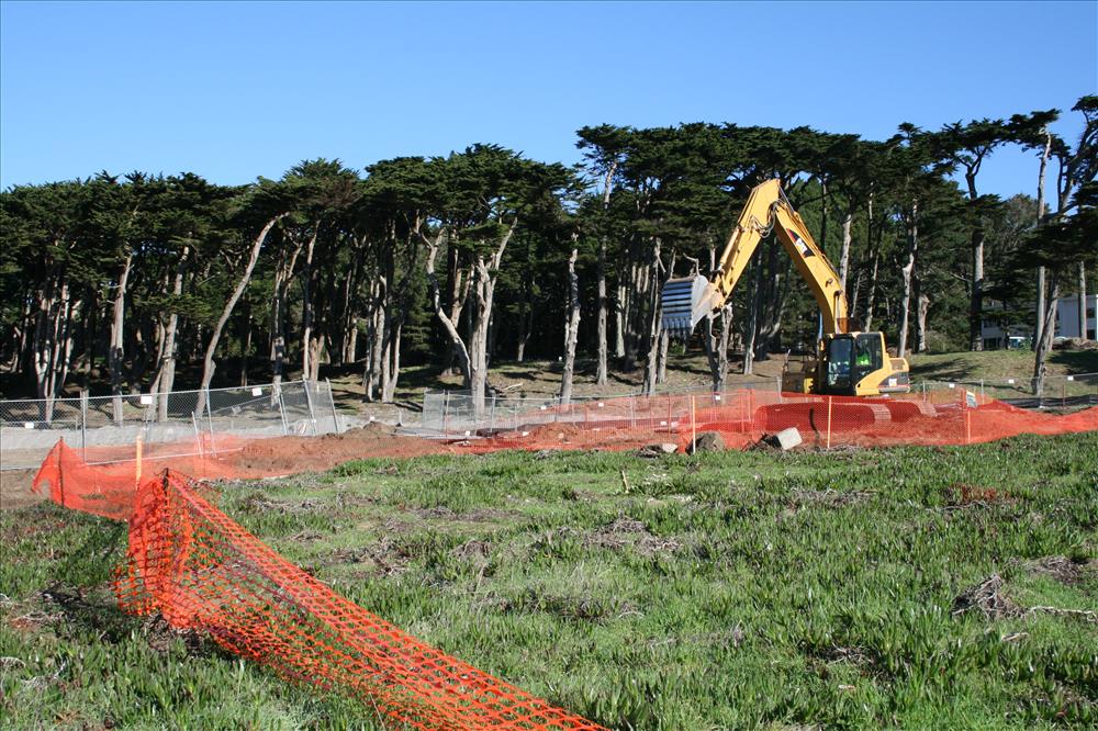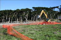 The existing Merrie Way parking lot is approximately 100 feet wide by 350 feet long. Fifty feet of the width sits on un-engineered fill and poses a landslide hazard. In order to re-construct a fully code compliant parking lot and subsurface drainage system, the geotechnical engineers recommend drilling cast-in-place concrete piers every 8 feet along the western edge and extend them down through the fill to bedrock to stabilize the slope (approx 65 feet deep) and prevent failure. After stabilization work is completed, the parking lot will be regraded and resurfaced using sustainable design practices.