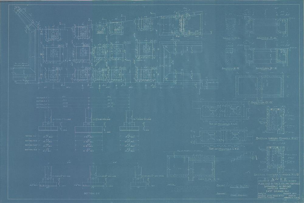 Springdale Avenue Bridge Improvements--Montdale Branch--Plan, details and column footings--East Orange, NJ [1921.07.25] Sheet no. 2 of 7