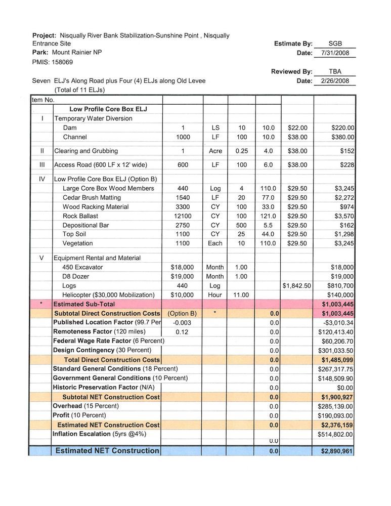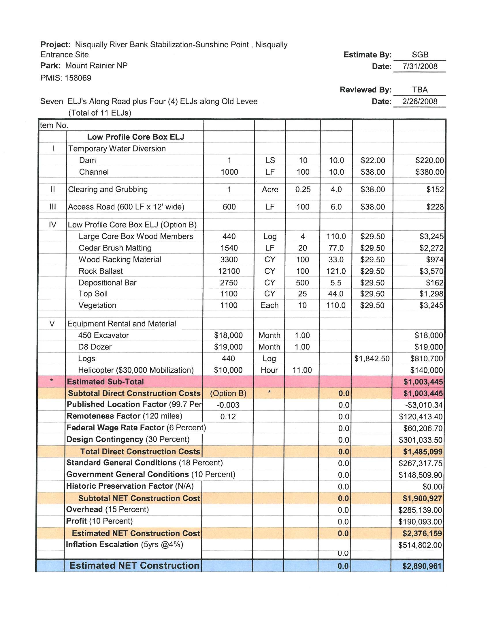 Cost estimate for construction of ELJ's Nisqually Road near Longmire and Nisqually Entrance Mount Rainier National Park February 2010.