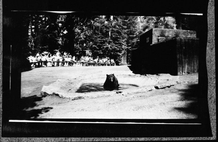 Unknown Photographer, Unknown Date, Giant Forest, SNP, Bears and Bear Damage, Bear in tub at Bear Hill.