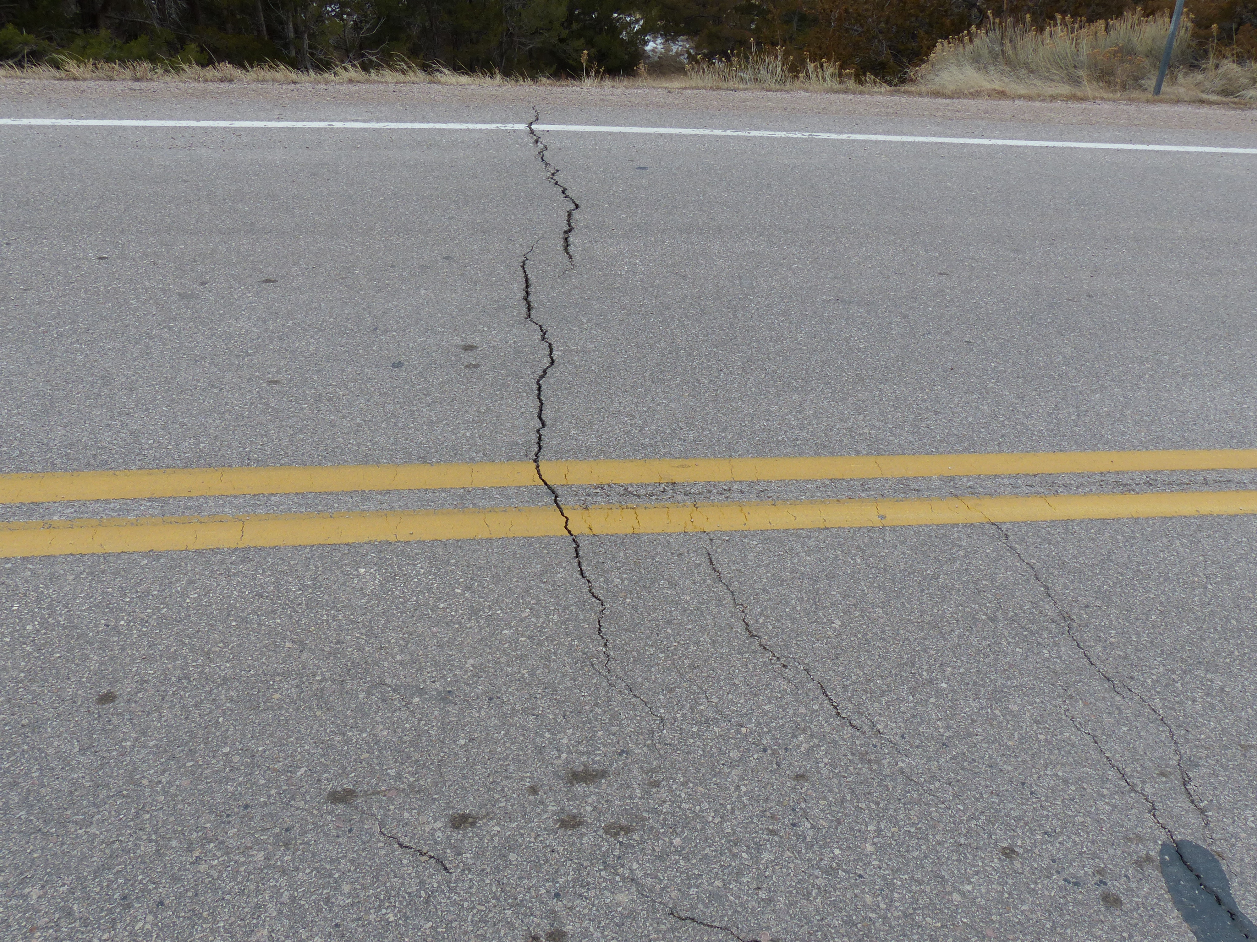 Asphalt surface conditions, frost heaves and low spots. Cliff Shelf Area asphalt heaves.