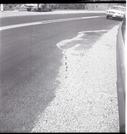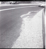 BW photos of rock slides in Kolob Canyons - 2x2. Ranger with camera reaching into crack in the road. ; ZION Museum and Archives Image 107_06_23012 ; ZION 15933