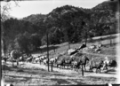 Unknown Photographer, Three Rivers area, Construction, hauling first armature to power-house No. 1 on Kaweah River. 7 teams and wagon. 970000 (1897)