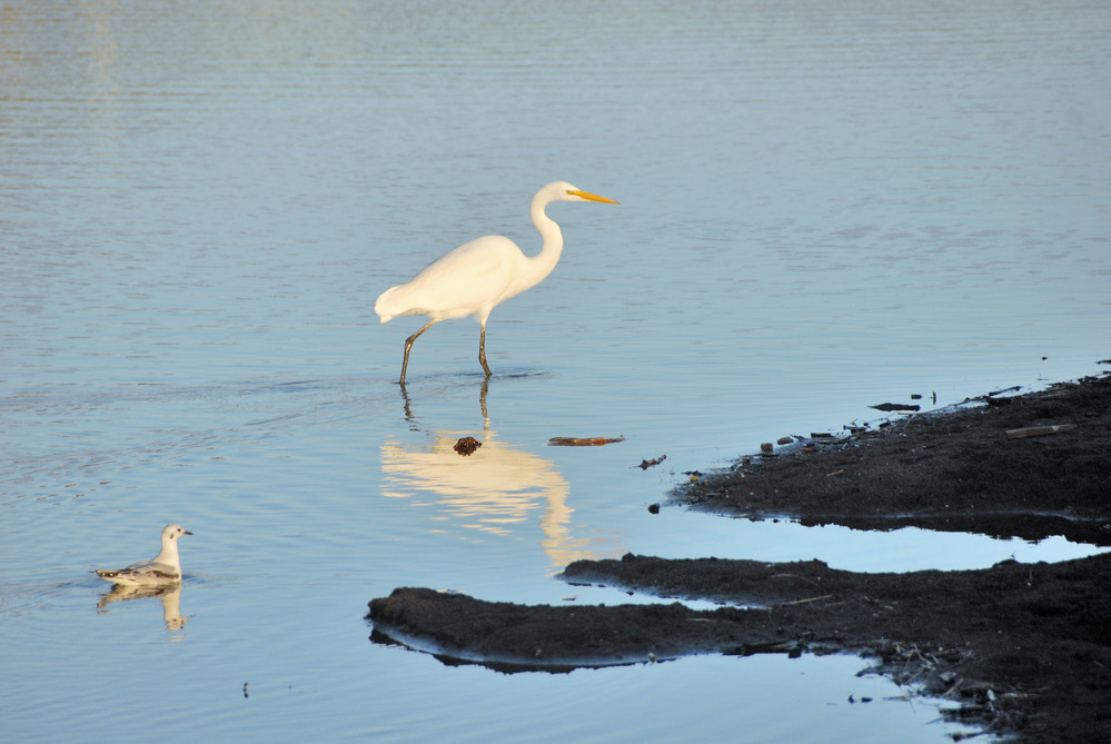 Great Egret (Ardea alba) hunting in the Marin Headlands