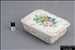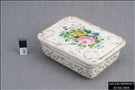 A German SPM porcelain box and cover, rectangular, with rounded corners and centrally painted with a bouquet of flowers within moulded gilt lines.
