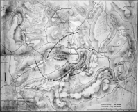 A map of the battlefield from 1865 shows the positions of the opposing forces on the Appomattox Court House Landscape. The Civil War battle at Appomattox was fought in April, 1865, culminating in General Robert E. Lee's surrender of the Army of Northern Virginia which was the beginning of the end of the Civil War. The landscape's topography, structures and roads, and subsequent period of commemoration are all associated with this significant battle event.