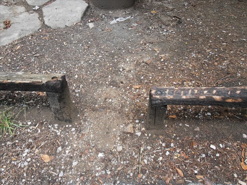 Pictures of Rockcreek campground campsites, tables, vault toilet, road, and area.