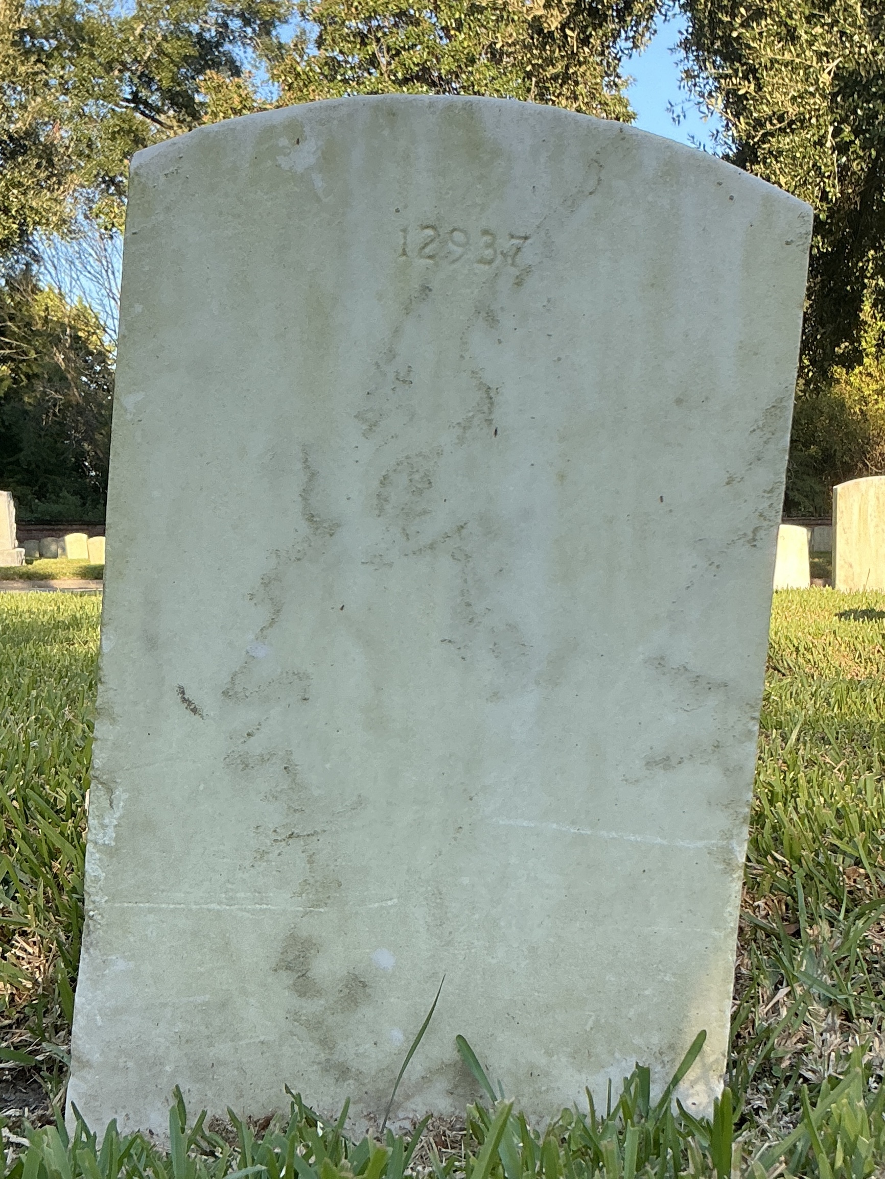 Headstone at Chalmette National Cemetery. Grave ID: 12937. Located at Section 160, Row 4, Site Number 14. Photo taken as part of the 2024 condition assessment and inventory.