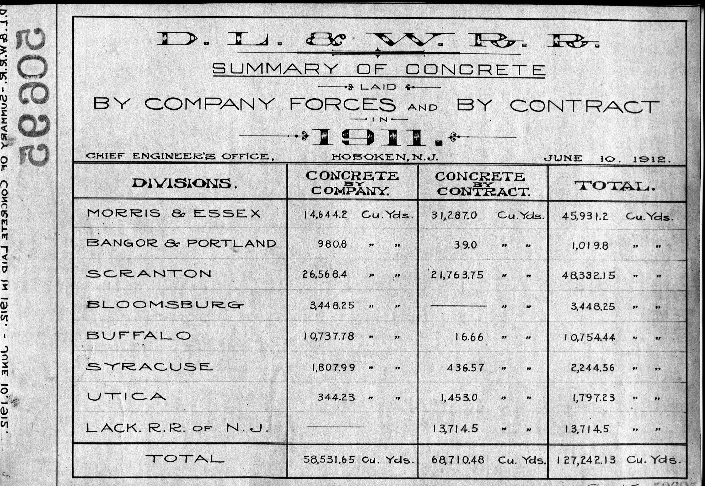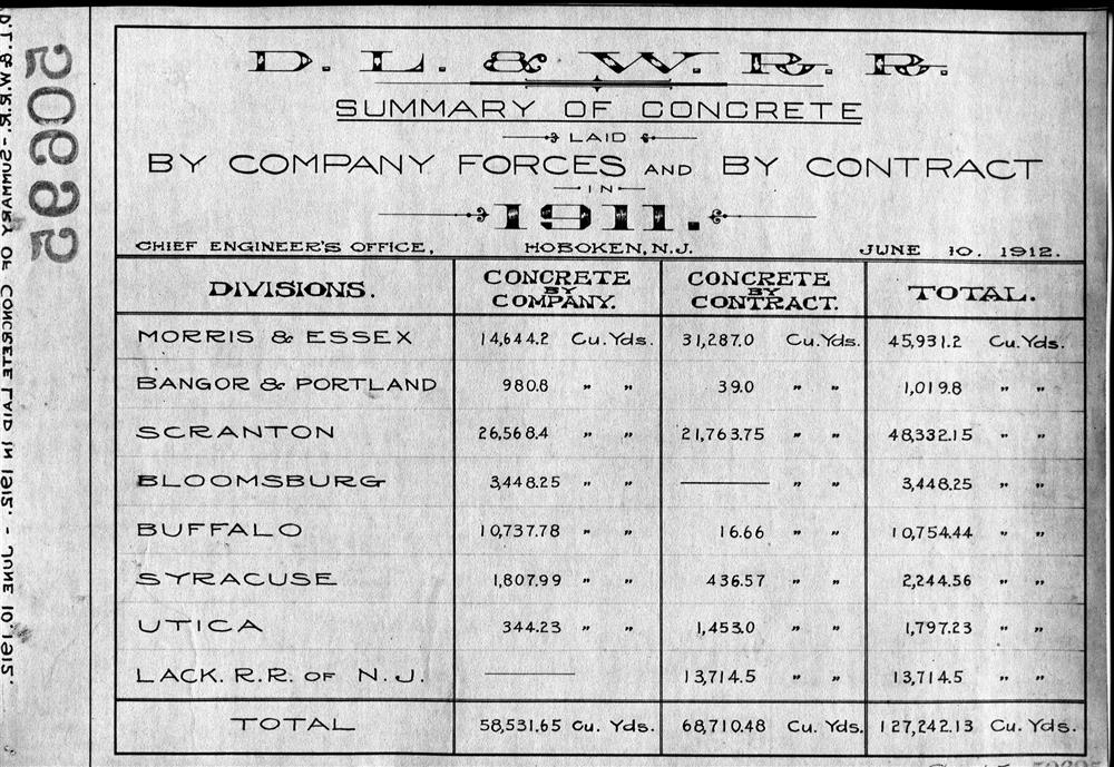 50695.BA#001--(GROUP 1) Summary of concrete laid by company forces and by contract broken down by division by year--1900 thru 1931