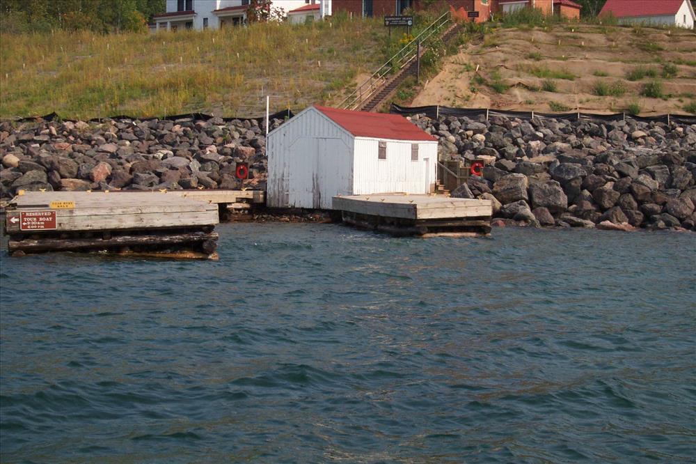 Raspberry Island Marina/Waterfront System that is in need of major repair. Pictures and drawing are from multiple time periods; but the docks are in poor condition.