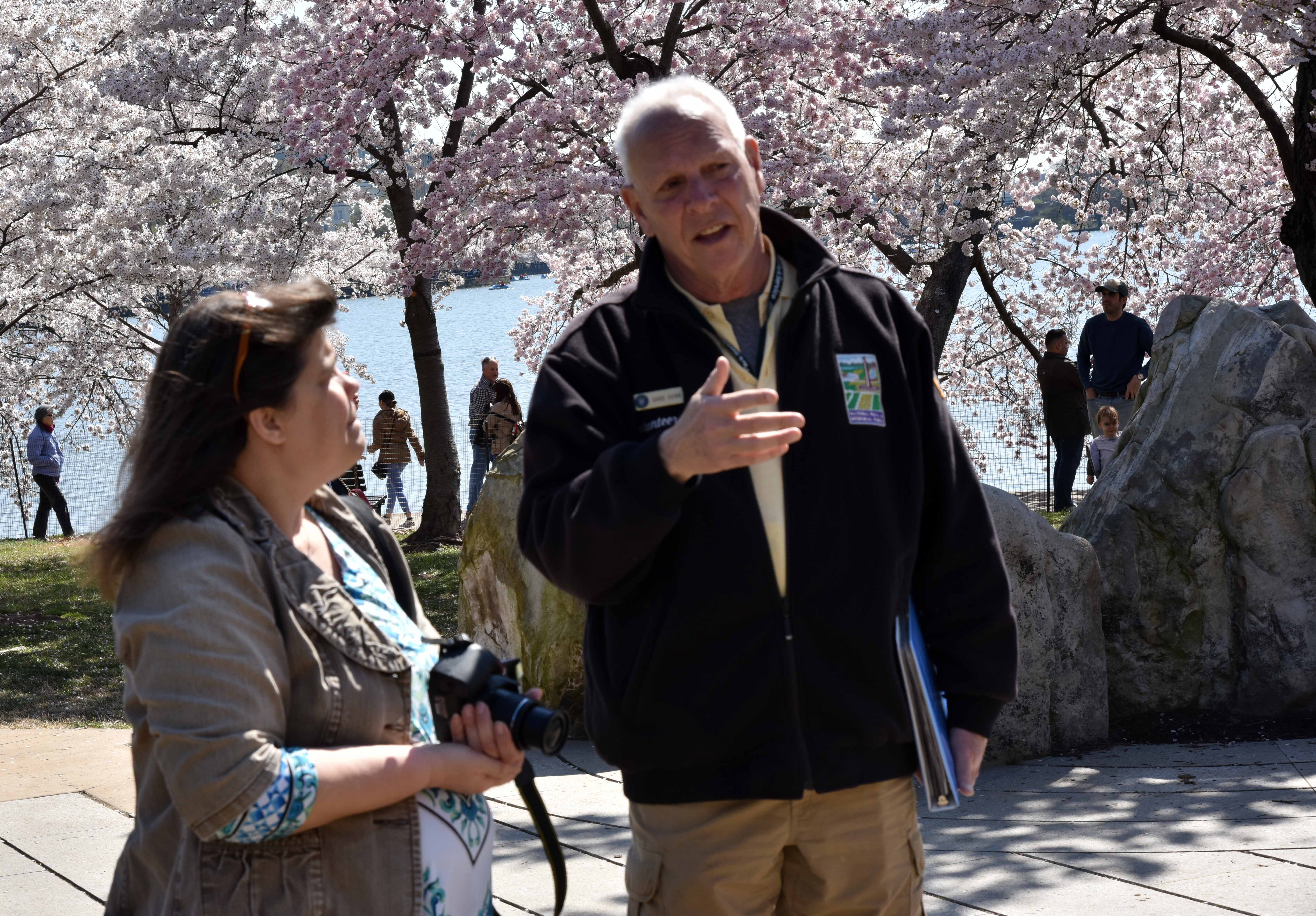 Volunteers answer questions, provide directions, and deliver interpretive messages at the National Cherry Blossom Festival.