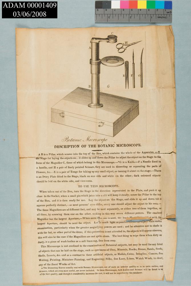 Booklet Describing Botanic Microscope from the Adams National Historical Park Collection