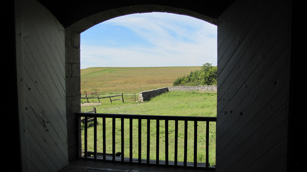 Window on the prairie. Visitors use this space to make memories by taking photos out the west barn doors.