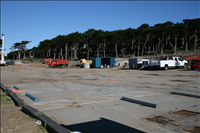 The existing Merrie Way parking lot is approximately 100 feet wide by 350 feet long. Fifty feet of the width sits on un-engineered fill and poses a landslide hazard. In order to re-construct a fully code compliant parking lot and subsurface drainage system, the geotechnical engineers recommend drilling cast-in-place concrete piers every 8 feet along the western edge and extend them down through the fill to bedrock to stabilize the slope (approx 65 feet deep) and prevent failure. After stabilization work is completed, the parking lot will be regraded and resurfaced using sustainable design practices.