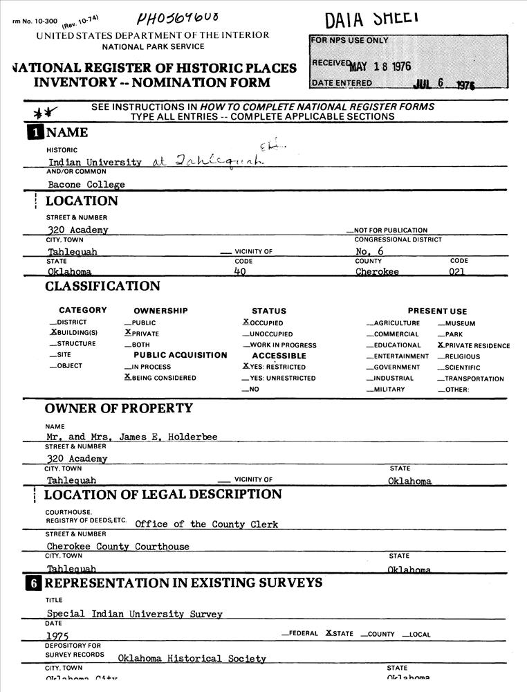 Tahlequah ; 320 Academy