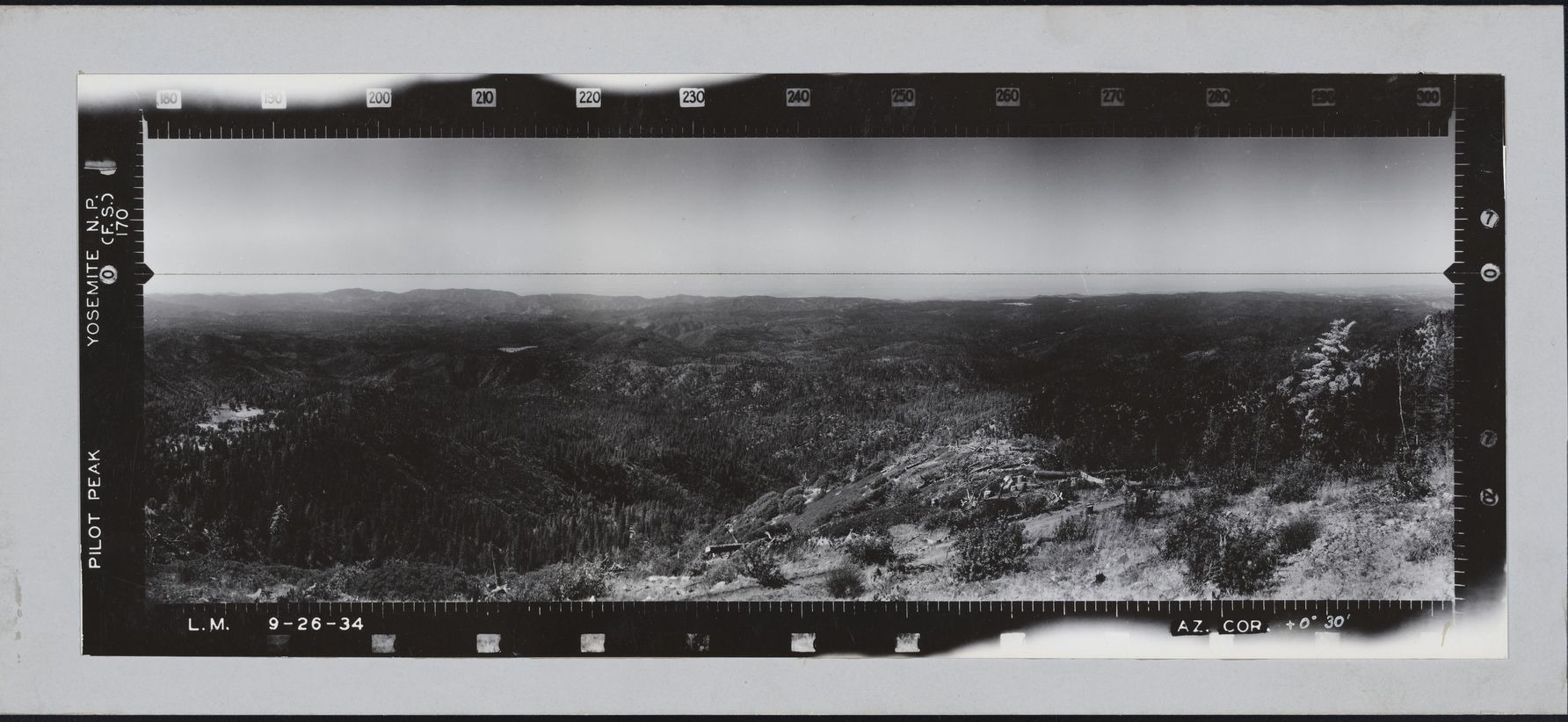 Source: Extended Description Content: These photographs provide excellent documentation of Yosemite’s topography in the 1930s. Covering 120 degrees of the horizon, they were utilized for many decades by Yosemite lookouts to accurately locate forest fires. Today, in addition to conveying information about historic road and trail locations, changes in vegetation and landscape, and geomorphology, they provide a visual juxtaposition to later photographs that is useful for a variety of scientific, management, and administrative purposes.