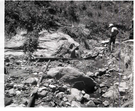 BW photo of a rock slide at the gateway to the narrows. ; ZION Museum and Archives Image 107_06_08004 ; ZION 15933
