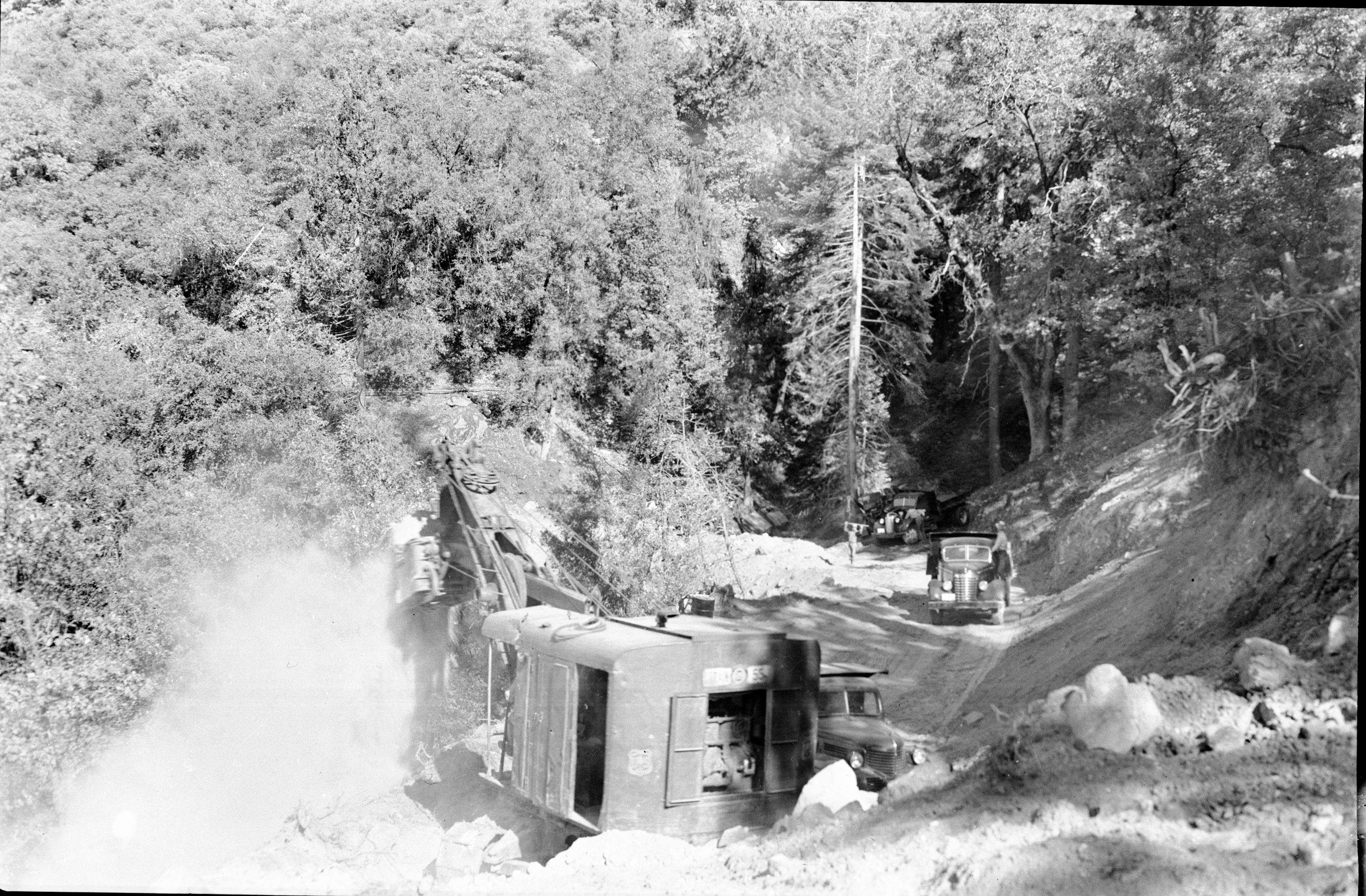 Construction, steam shovel working on Generals Highway, Vehicles and Equipment.