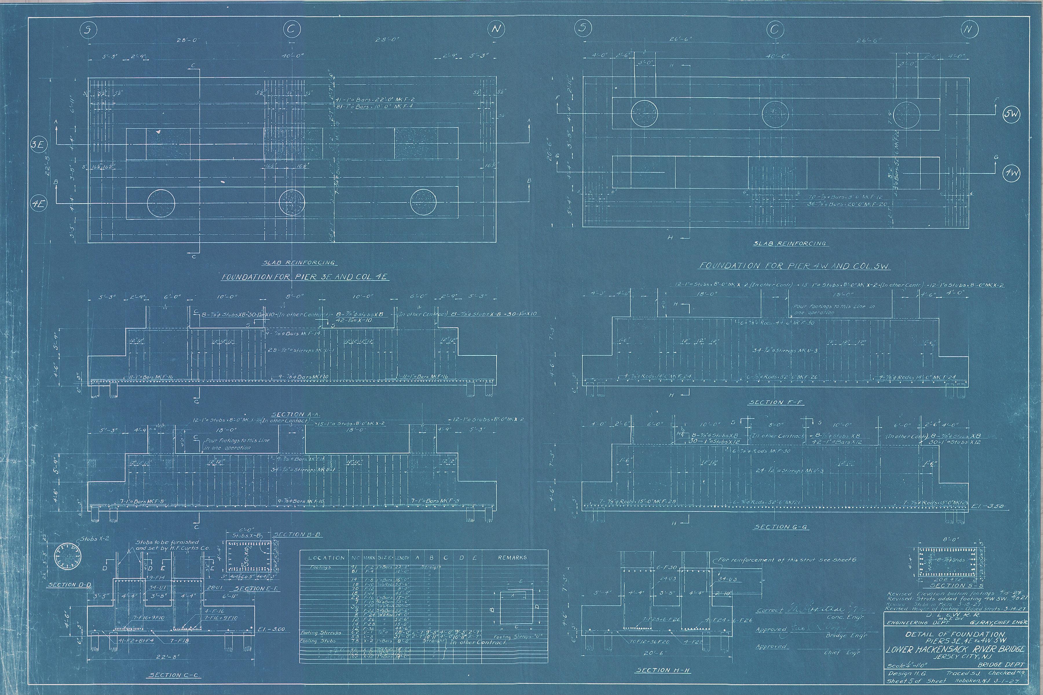 Lower Hackensack River Bridge--Detail of Pier nos. 3E, 4E and 4W, 5W--Jersey City, NJ [1927.03.01] Sheet no. 5