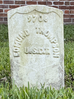 Front of historic upright marble headstone with recessed shield with recessed lettering face.