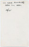 Original ID Portrait of a western camp. 1954th Company, CCC, Camp NM-4. Pinnacles National Monument. Pinnacles, California. [Continued from PINN-4372-0886 original description] The smaller it is. [Reverse side of image] CCC Camp, Pinnacles, from CCC Trail, 10/35., 4.25 x 2.5 inches