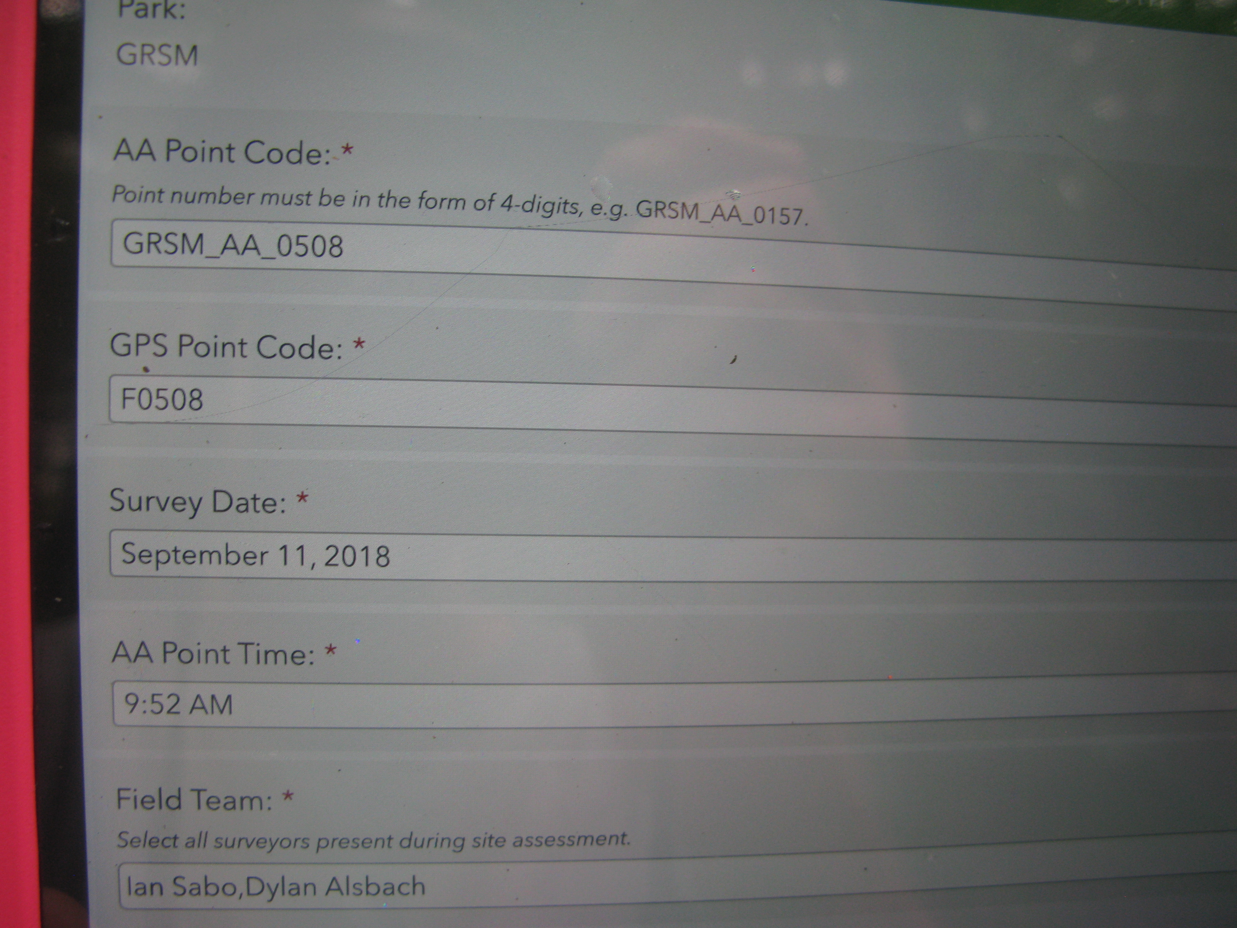 Plot Code: GRSM_AA_0508_1 from the Great Smoky Mountains National Park (GRSM) Accuracy Assessment.